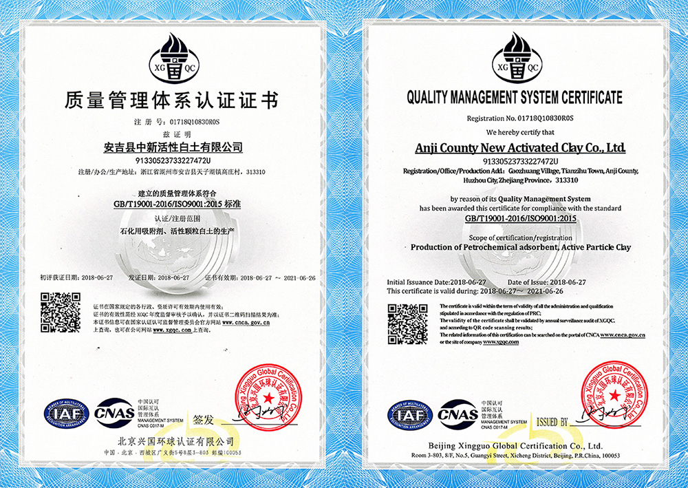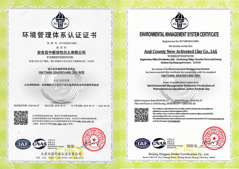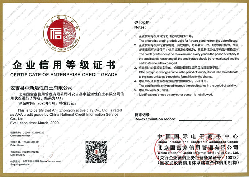 Copyright(C)2020, Anji Zhongxin Activated White Clay Co., Ltd. All Rights Reserved. Supported by ChemNet ChinaChemNet Toocle Copyright Notice